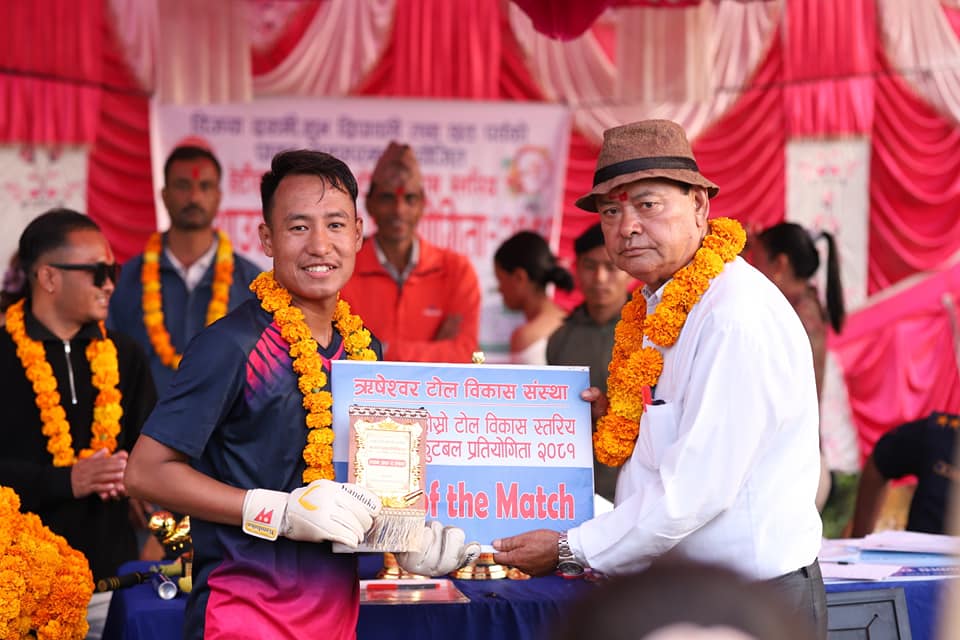 खेलको म्यान अफ दि म्याच ऋषेश्वर टोल विकास संस्थाका आयुष थापा मगर भएका थिए ।